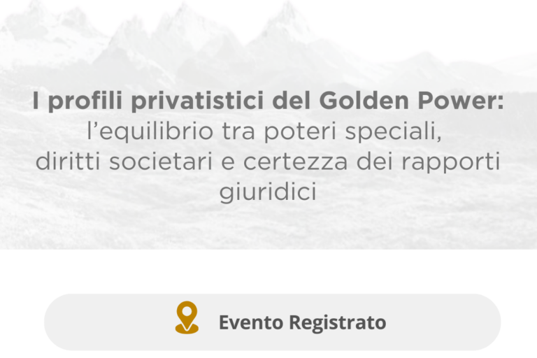 I profili privatistici del Golden Power: l’equilibrio tra poteri speciali, diritti societari e certezza dei rapporti giuridiciMaggiori informazioni